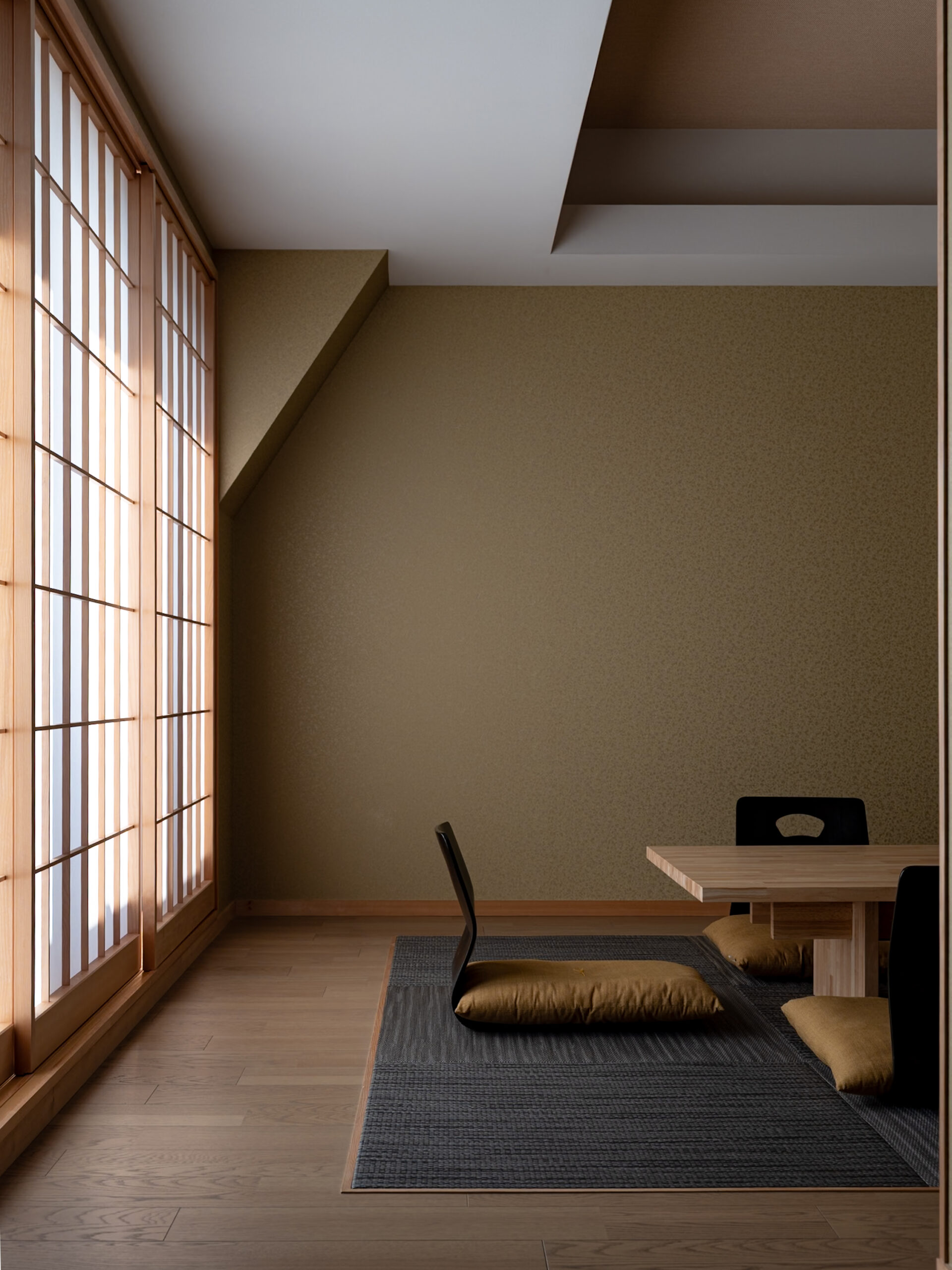 日本の美意識とモダンデザインが調和する空間で、和の趣を感じながら語らうひととき。思い思いにくつろぐ、贅沢な時間をお楽しみください。